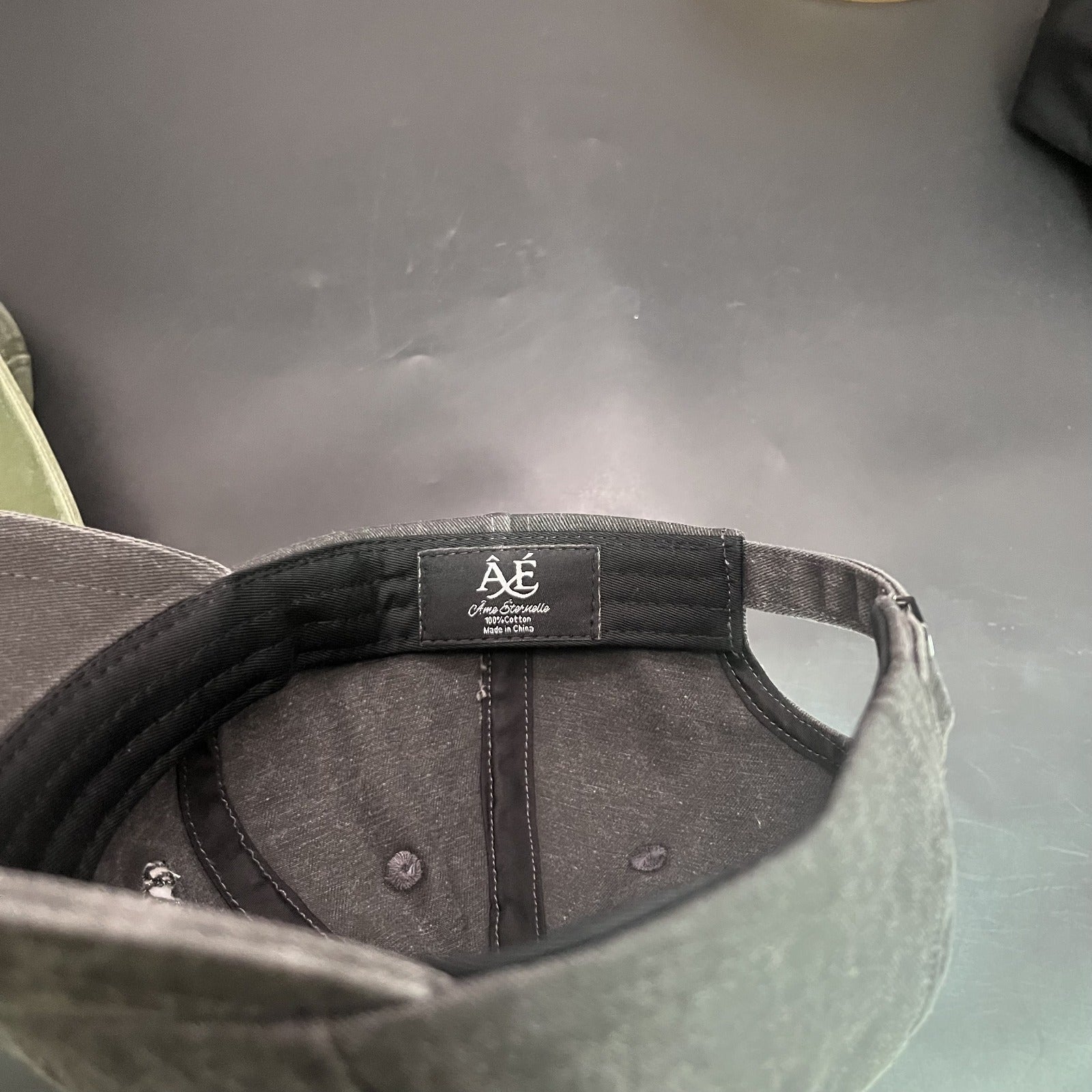This washed black 5-panel unstructured baseball cap features the signature "Âme Éternelle" and "Eternal Soul" logo embroidered on the front. Crafted from 100% cotton, the cap offers a soft, relaxed fit with a curved brim and black metal buckle closure.